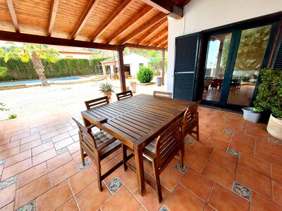 Spectacular Large Villa (200m2) set in 1,000m2 Plot with Establised Gardens and Mature Trees - Magnificent Covered Terrace over looking the Large Swimming Pool - 8 Bedrooms - 4 Bathrooms, Large Living Room - Impressive Fitted Kitchen with Island Unit - 200m2 Underbuild with Garage Area, Snooker Area and Entertainment Area & so much more - Gated Urbanisation close to the attractive town - €340,000 euros